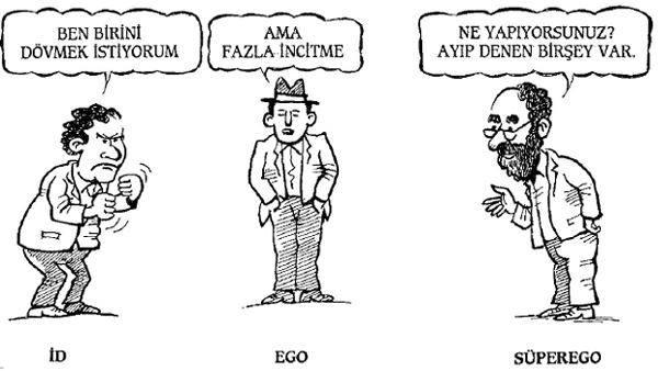 İd, Ego ve Süperego, Freud’un psikanalitik teorisinde kişiliğin üç ana bileşenini oluşturur. İd, içgüdüsel arzuları ve istekleri temsil ederken, Ego bu arzuları gerçek dünyaya uygun şekilde yönlendirmeye çalışır. Süperego ise, bu isteklerin ahlaki ve etik açıdan doğru olup olmadığını denetler. Freud’a göre, bu üç yapı arasında sağlıklı bir denge kurulması, kişiliğin düzgün bir şekilde işlemesi için gereklidir.