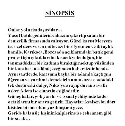 Sinopsis filmin (senaryonun) özetidir. Filmin başında ve sonunda ne olacağı anlatılır. 4 - 5 cümlede anlatmak yeterlidir bir ya da en fazla iki pragrafı geçmemelidir. Bütün senaryo özetlenmez, detaylı yazılmaz. Bir sayfayı geçen sinopsisler okunmadan elenir çünkü senaryonuzu okuyacak kişiler vakit kaybedemeyecek kadar yoğundur ve sürekli önlerine çeşit çeşit senaryo gelir. Uzun yazıları okumazlar. Okutmak istediğiniz kişi ya da kurumlar sizden sinopsis için 150 kelimeyi geçmesin 500 kelime olsun gibi özel isteklerde bulunabilir. Senaryonuzu değerlendirmeden önce yazdığınız sinopsis okunur. Eğer sinopsiste ilgilerini çekemezseniz senaryonuz okunmaz.