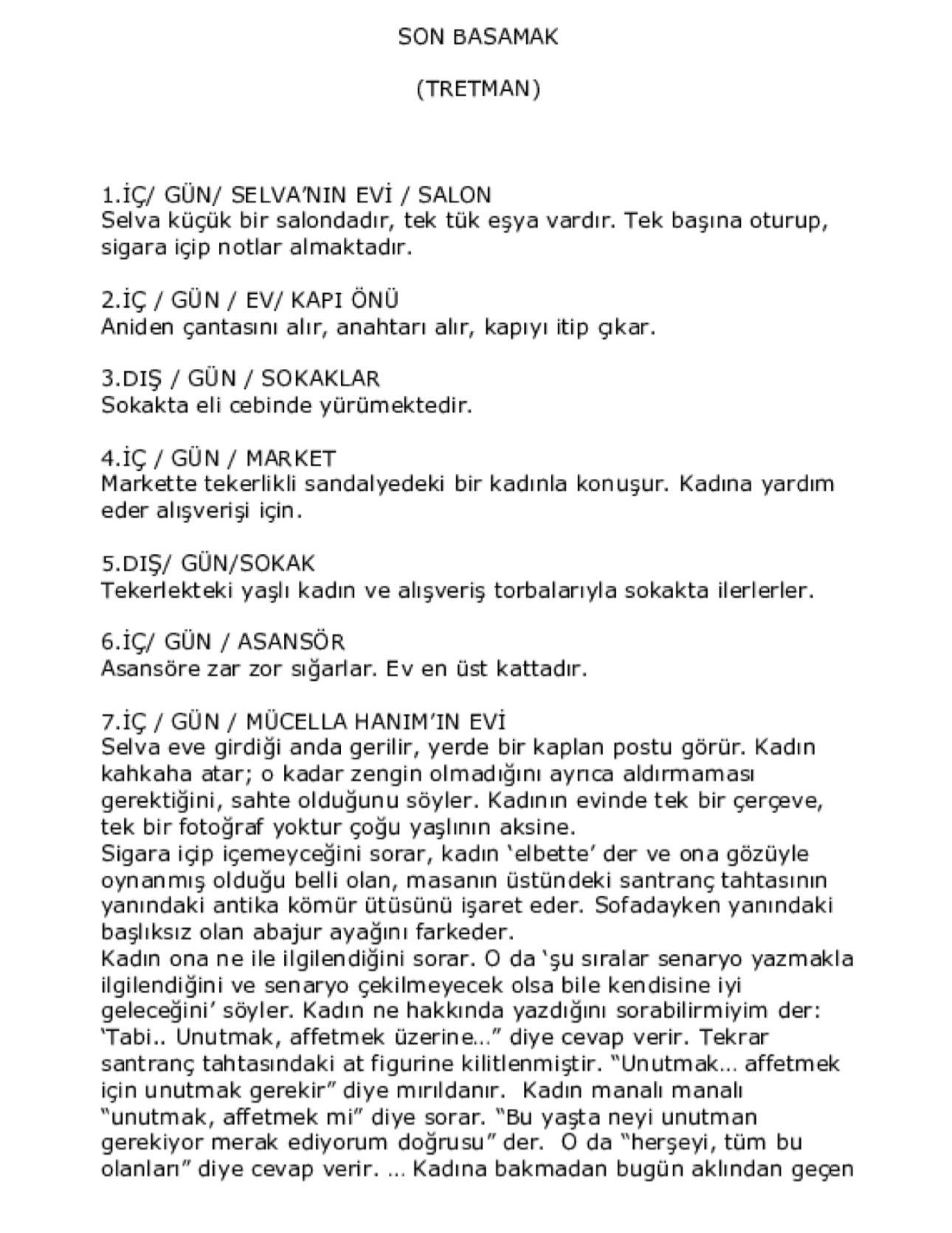 Bir olay ya da konu belirlediniz. Giriş, gelişme ve sonuç olması gerekir. Hikayenize dikkat çekici bir giriş yapmalı, izleyen ya da okuyan kişileri sürükleceyek bir gelişme süreci izlemeli ve hikayenin gidişatını parlatacak iyi bir sonucunuz olmalı. Final çok önemlidir. Akılda her zaman final kalır. Ama izleyiciyi sonuna kadar getirebilmelisiniz. İlk önce bir taslak oluşturun. Bu taslağa Sinopsis denir. 1 sayfayı geçmemelidir. Sonrasında Karakter Analizi yapın. Ardından nasıl bir kurgu ile yazacağınızı seçtikten sonra senaryonuzu yazın ve devamında Tretman hazırlayın. Şimdi yapımcıların kapısını çalmaya hazırsınız. Peki bu saydığım maddeler nasıl yazılır?