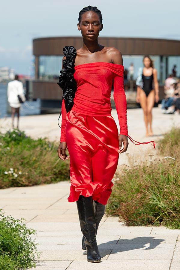Ağustos ayının 5’i ve 8’i arasında gerçekleşen Kopenhag moda haftasının incelemesine geçmeden hemen önce, Kopenhag’ın moda dünyası için öneminden biraz bahsedelim. Kopenhag, New York, Londra, Milano ve Paris ile birlikte sıklıkla beşinci moda haftası şehri kabul ediliyor. Sürdürülebilirlik konusundaki küresel liderliği ile etik ve uygulamalara ve çevreye duyarlı tasarıma güçlü bir vurgu yaparak İskandinav minimalizminin ve yenilikçi sürdürülebilirlik çözümlerinin maksimalizmle buluştuğu ve geleneğin sürdürülebilirlikle iç içe olduğu tezatlarla ve sokak stiliyle de gücünün önemli parçası haline geldi. Ki unutmayalım, Kopenhag’ın popülaritesinin nedeni erişilebilirliğidir. Yalnızca Birkin çantasına sahip kişiler değil, fiyatlar konusunda geniş bir alana hitap eder.