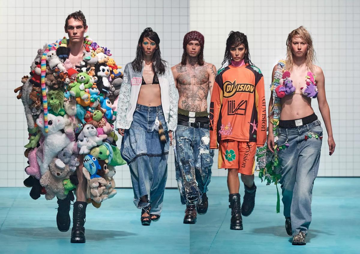Bu sezon (Di)vision ve Stamm gibi markalardan gelen eklektik bir Y2K akını, Z Kuşağının imzası olan cesur - ve bazen uyumsuz - stil kodlarıyla birleşti. İlkinde nostaljik motifler, Gogo oyuncakları, tamamen tüylü hayvanlardan yapılmış bir elbise ve motosiklet ceketleri yer aldı. İkincisi? Sloganlı tişörtler, yin-yang sembolleri ve bol diz üstü çizmelerin üzerine çizgi film Japonca yazıları.