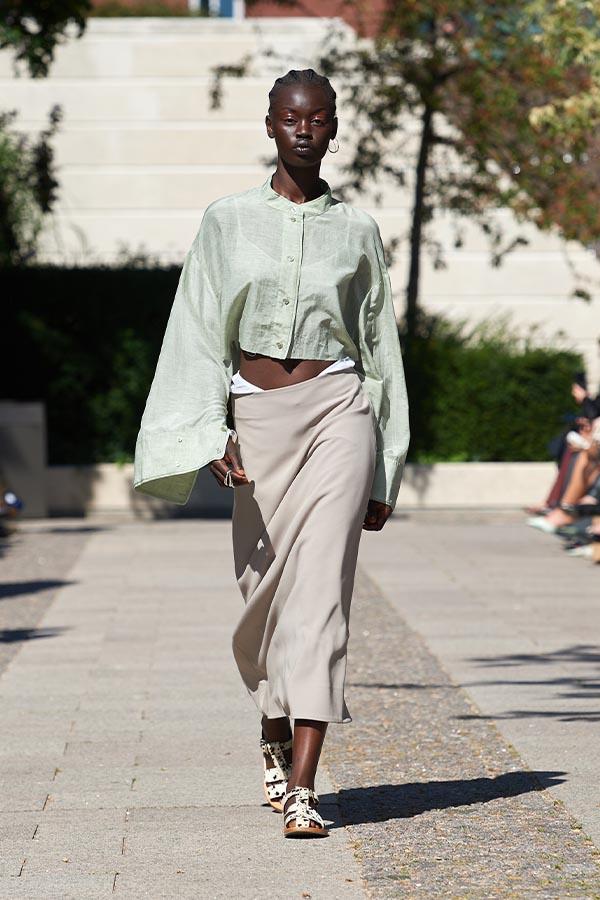 Koleksiyonların en az %60’ı sertifikalı, tercih edilen malzemelerden veya atık kumaştan yapılmıştır. Podyum kuralları da oldukça katıydı. Vitrin için tek kullanımlık sahne üretmesine veya kullanılmasına izin verilmedi ama açıkçası bazı koleksiyonlar için bu sahne düzenekleri yetersiz kaldı.