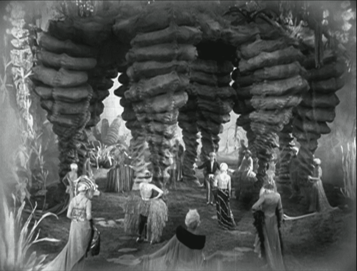 Görsel 3: Filmdeki yerin üstünde yaşayan sınıfın vakitlerini harcadığı çarpıcı mekanlardan birisi olan Eternal Gardens (Lang, 1927).