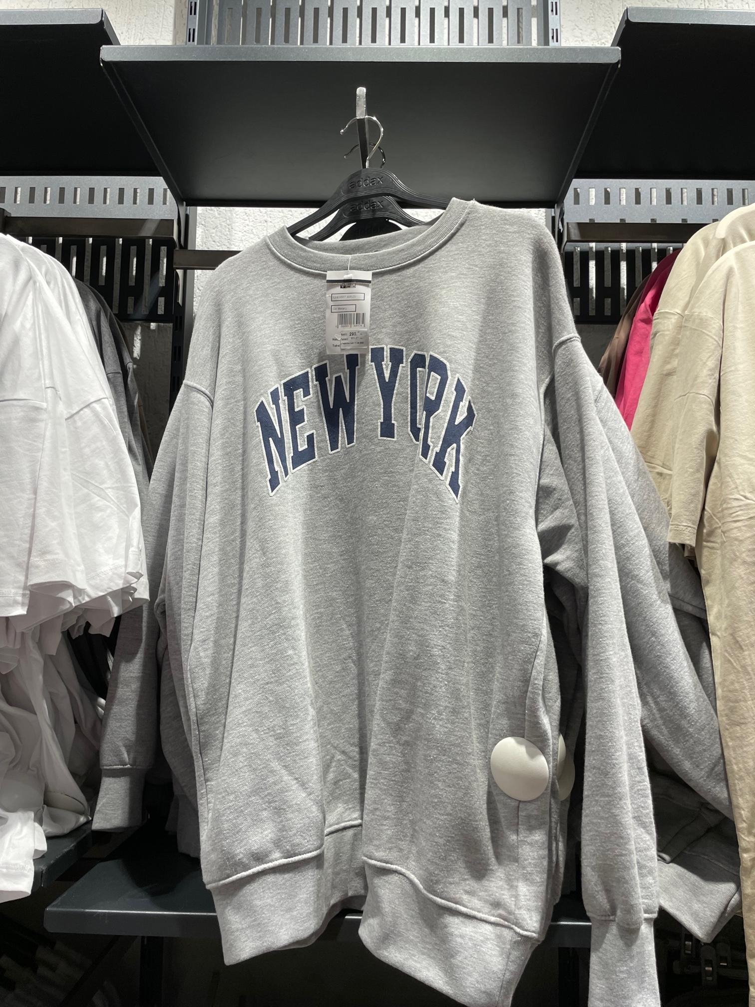 Çeşit çeşit kıyafet arasından birçok şey seçtiğimiz bir alışveriş günü olduğu için, günün alışveriş günü olduğunu sembolize etmesi için sadece New York yazılı bir sweatshirt koyabiliyorum.