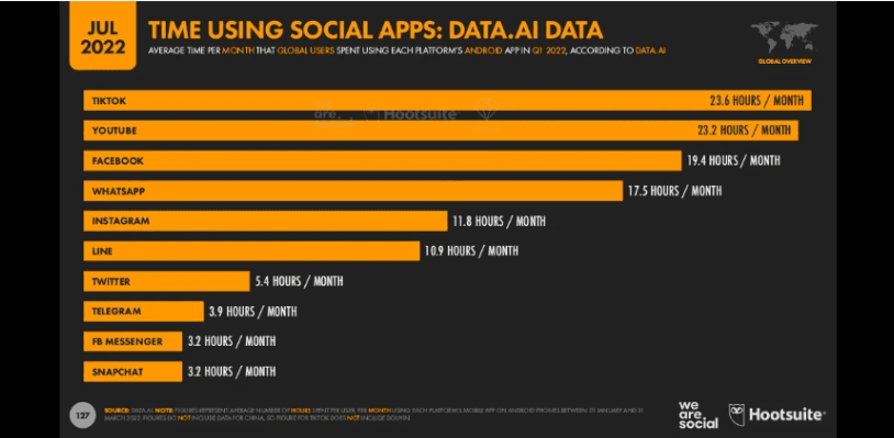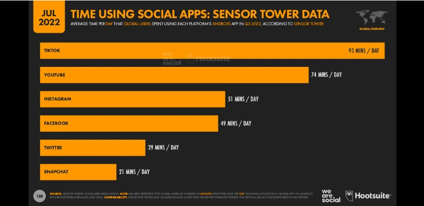 Wearesocial ve Hootsuite tarafından yayınlanan 'Dijital 2022: Temmuz Küresel İstatistik Raporu'na' göre TikTok'un dünya çapında 18 yaşüstü 1.02 Milyar aktif kullanıcısı bulunuyor. Bu dünya çapındaki sosyal medya kullanıcılarının yüzde 20,3'ü demek. Yine aynı rapora göre, küresel çaptaki kullanıcıların sosyal medya kullanım zamanlarına bakıldığında günde 95 dakika ve ayda 23,6 saat ile TikTok ilk sırada yer alıyor. Türkiye'de ise 18 yaşüstü güncel TikTok kullanıcıs sayısı 26,56 Milyon. Bu rapor TikTok'un her geçen gün nasıl büyüdüğünü de gözler önüne seriyor. Covid-19 salgının da TikTok ve diğer sosyal platformların büyümesinde etkisinin büyük olduğunu söyleyebiliriz.