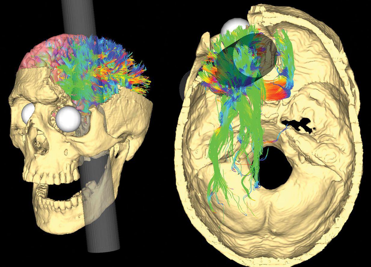 Phineas Gage, demiryolu inşaatında kayaları patlatma işinde çalışıyordu. Metal bir çubukla kayanın içine barut ve kum yerleştiriyor sonra kontrollü şekilde kayayı patlatıyordu. Bir gün gene çubukla barutu yerleştirirken barutun patlamasıyla çubuk delikten fırlayarak kafatasının içinden geçti. Metrelerce öteye fırlayan demir çubuğun üzerinde beyin parçaları vardı. Gage'in beyninin frontal lobları tamamen yok olmuştu. Fakat olayın ilginç yanı bir süre sonra bilinci açıldı ve insanlarla konuşmaya başladı, kafasında koca bir delikle! Doktora açık bilinçle gitti ve uyanıkken tedavisi yapıldı. Tedavi yaklaşık 2 ay sürdü. Bir süre sonra işe döndü.