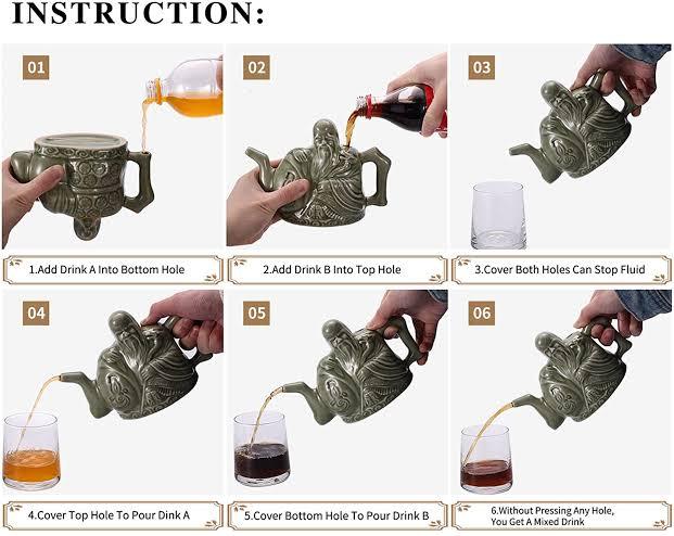 Bu çaydanlık şu şekilde çalışır: çaydanlıkta iki farklı sıvı için iki hazne vardır. Her haznenin çaydanlığın sapına yakın yerinde gizli bir deliği vardır. Belirli bir sıvının akması için hazneye bağlı olan deliğin açık kalması gerekir. Hiçbir delik kapanmadığında iki sıvı da akar.