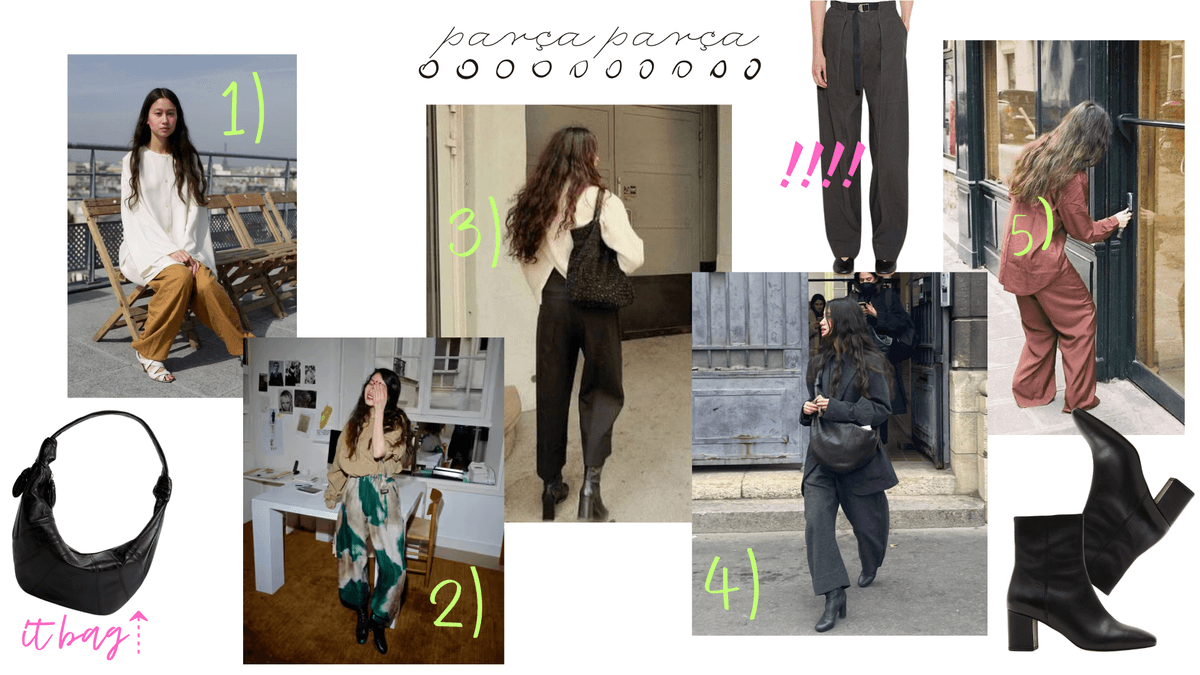 Sarah'ın dolabının vazgeçilmezlerinden olan en önemli şey sanırım bol kesim kumaş pantolonları. Midi etek ve tulum dışında tercih ettiği tek alt giyim diyebiliriz. Renk renk tercih ettiği bu kumaş pantolonlar sanırım bu durgun maskülen havayı yakalamasını sağlayan en büyük etken.