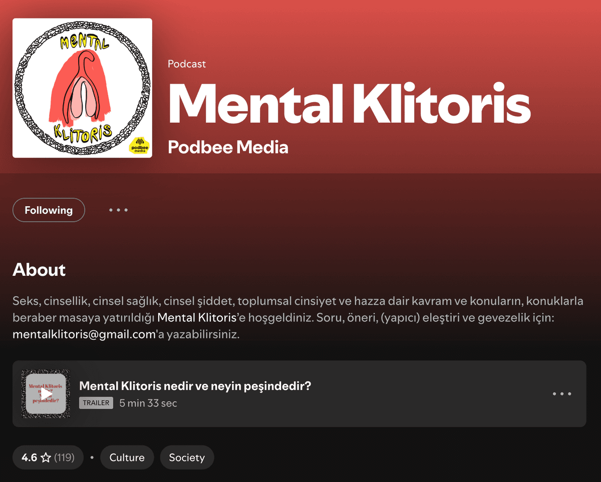 Araştırma yaparken çok yararlandığım bir seri. Hazal Siphai, seks pozitif bir bakış açısıyla cinselliği, toplumsal cinsel eşitliği, LGBT+ bireylerin cinselliği gibi konular hakkında konuşuyor. Burada anahtar kelime "seks pozitifliği". Buna detaylı olarak başka bir yazıda değineceğiz. :) Bu podcast serisinde özellikle kadın cinselliğine dair çok fazla şey öğrendim, ön yargılı olduğum konulara tarafsız bakmaya başladım. İlgi çekici birkaç podcasti sizinle paylaşmak isterim:
