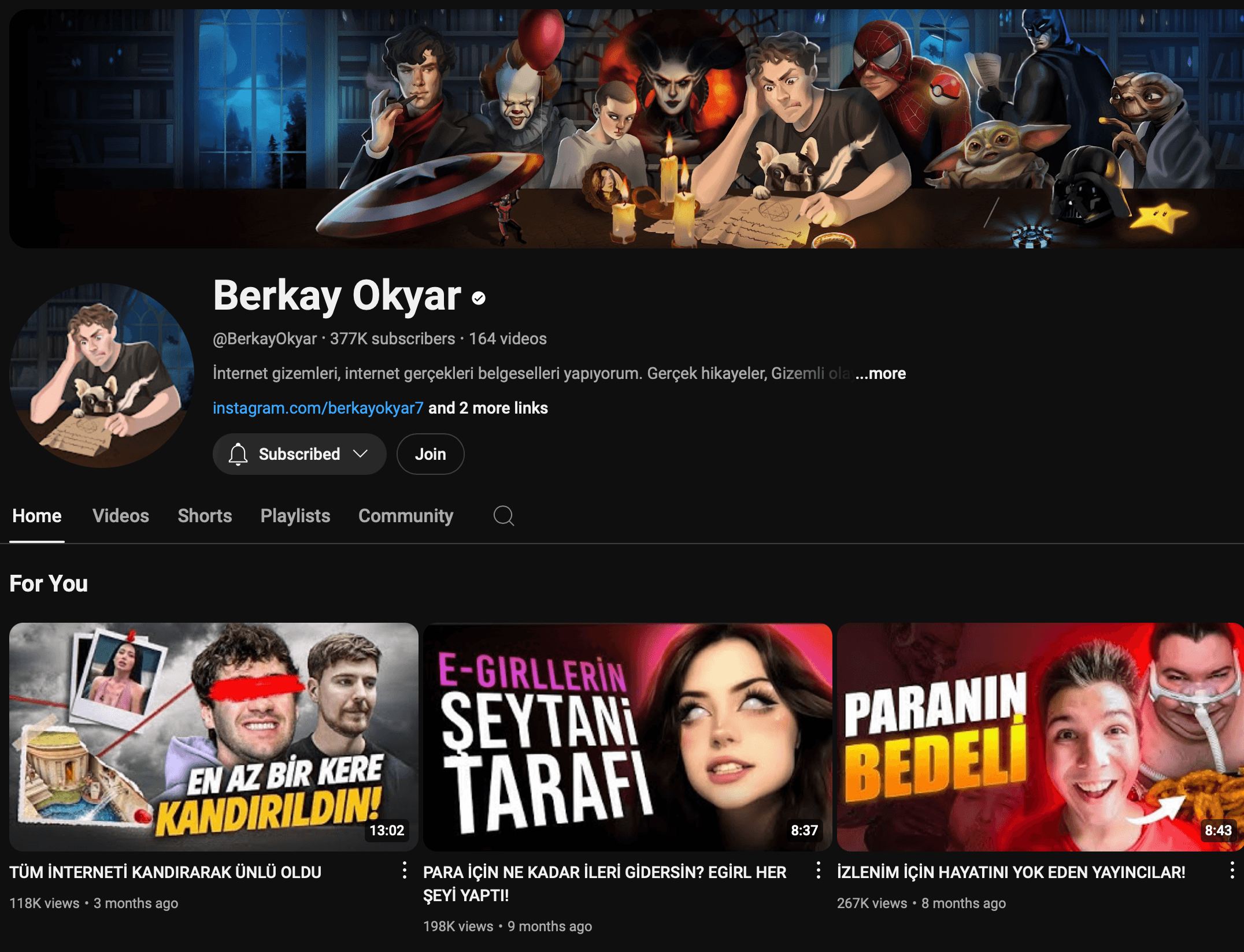 Berkay Okyar, internetteki ilginç ve gizemli olayları anlatıyor. Bilinen olayları da detaylıca araştırıp bilmediğiniz yönlerini size aktarıyor. Kendince gizemli bir atmosfer yaratması, onu diğerlerinden farklı kılıyor.