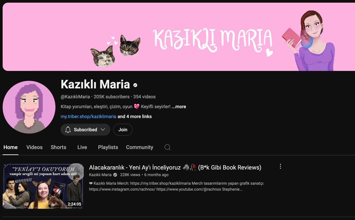 Kazıklı Maria; popüler kitapları inceliyor ve eleştiriyor. Kadın seri katiller, Türk seri katiller gibi podcast tadında videoları var. Feminizm konusunda öne çıkıyor kendisi. Ayrıca gündemde olan olayları yorumluyor.
