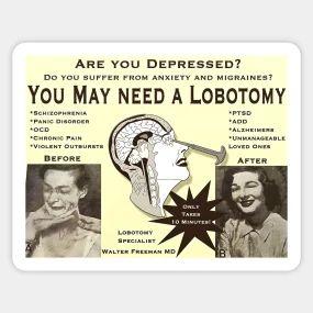 Thanks to several tranquilizers appearing in 1950’s Lobotomy started to become less common. Dire consequences of Lobotomy was negatively reflected on press and medications such as antidepressants along with antipsychotics were favored by professionals. It was banned by Soviet Union in 1950’s and several other countries followed. Last recorded Lobotomy belonged to Freeman in 1967 and ended in the death of the recipient.. Today, very modified versions of Lobotomy are alive and only performed when it is appropriate.