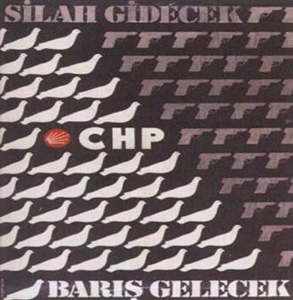 In this picture, re are pistols and white pigeons. And the logo of CHP is between the pigeons. Also “Guns will go away, peace will come” was written on the picture. So, when we sum of all up, this picture says that there are war conditions in Turkey and CHP is the white pigeon (symbol of peace) that will bring peace (Gülen 2019).