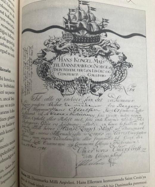 1.Fotoğraf: Danimarka Milli Arşivleri. Hans Ellertsen komutasında Saint Croix’ya giden de Friede isimli gemiye verilmiş 5 Ocak 1781 tarihli bir Danimarka patentesi.