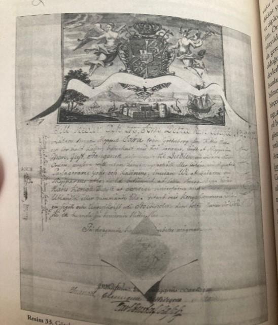 2.Fotoğraf: Göteborg bandıralı Sara adlı gemi için verilen 12 Haziran 1799 tarihl bir başka patente. (GÜRKAN, Emrah Safa, Sultanın Korsanları, sf.431-432.)