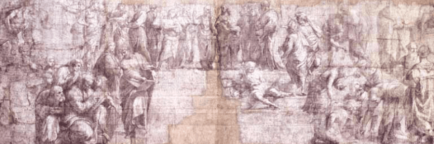 Aslında ilgili figür, Rafael'in yapmış olduğu etüt çalışmalarında yer almamaktadır. Figürün, sıva çalışmaları neticesinde sonradan eklendiği tespit edilmiştir.
