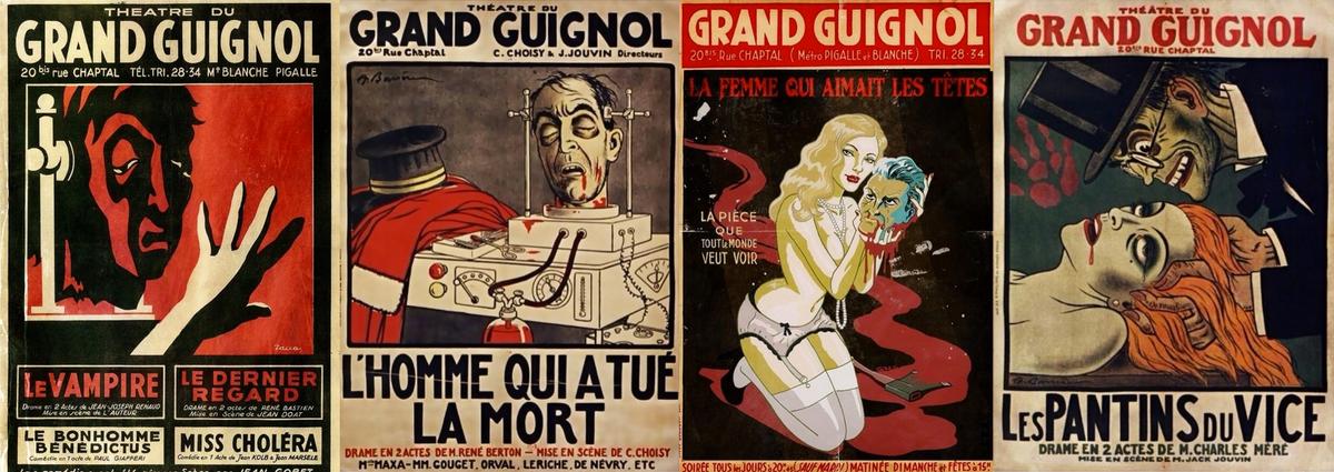 Yıl 1897, paris pigalle'de minik bir tiyatro açılır: Le Théâtre du Grand-Guignol. İsmini kabaca 'Büyük Guignol Tiyatrosu' olarak çevirebiliriz. Guignol ise, meşhur bir kukla gösterisinin ismidir. Bu tiyatro ilk başta kukla oyunları sergilemek amacıyla kurulsa da gotik mimarisi sebebiyle binanın çocuklar için çekici bir mekan olmadığı düşünülerek bu fikirden vazgeçilmiştir.