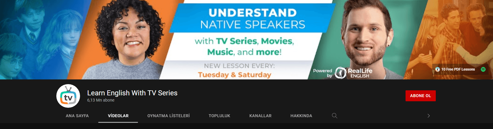 Herkese merhabalar, bugünkü yazımda sizlere harika bir Youtube kanalından bahsedeceğim: Learn English With TV Series.
