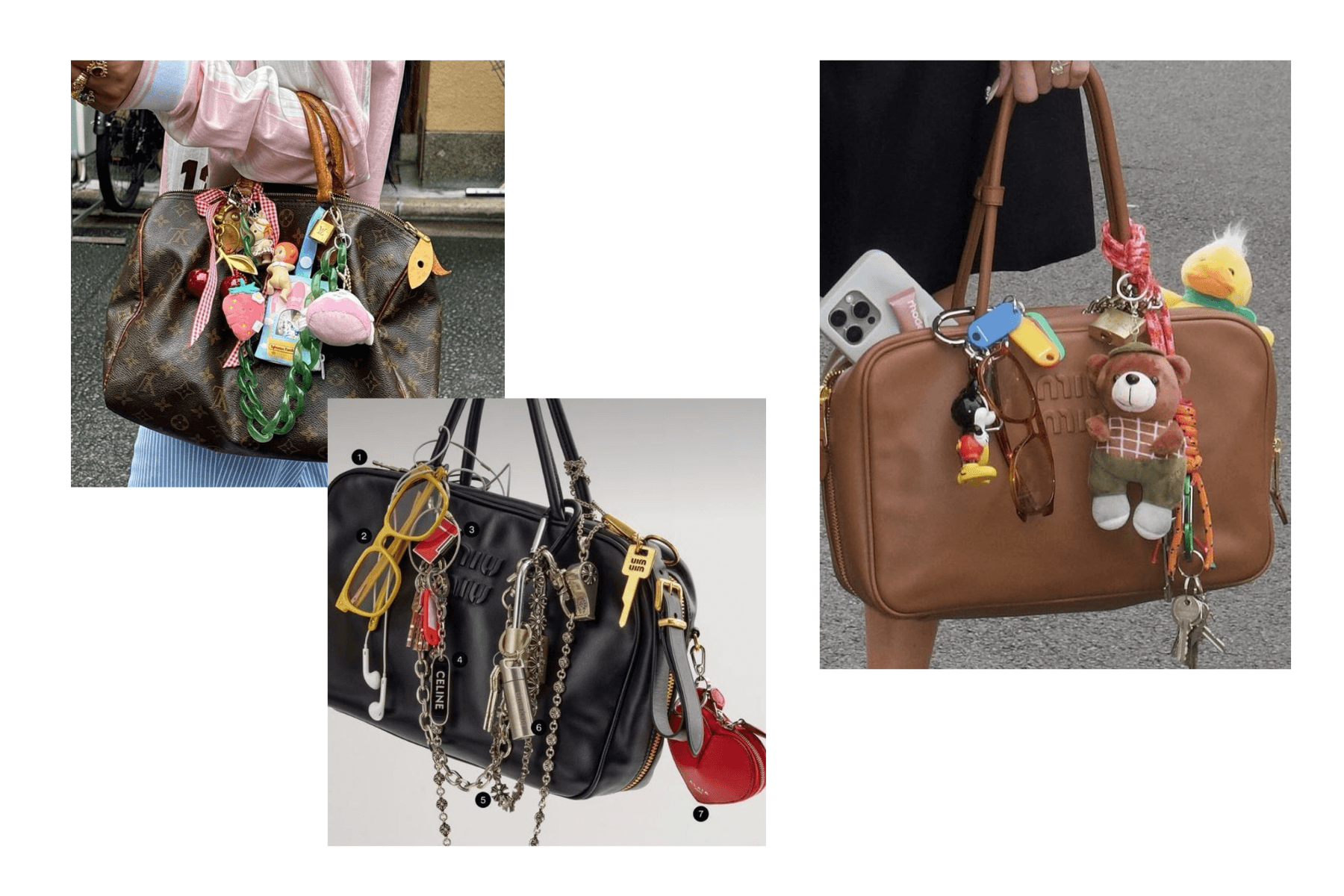 Tabii ki anahtarlıklar da charmlar gibi çantaları süslerken inanılmaz güzel duruyor. En sevdiğiniz peluş anahtarlıkları, şehir simgelerini, favori karakterlerinizi anahtarlıkların halkalarını kullanarak kolaylıkla çantalarınızda kullanabilirsiniz. Anahtarlıklar en şık çantanızı bile sporlaştırarak farklı kombinlerinize uydurabilmenizi sağlayacaktır.