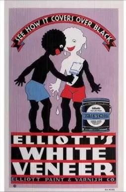 'See how it covers over black.' Created for Elliot Paint & Varnish Co. during 1930s, this paint ad reveals how a simple product about paints can become a tool for racism. The ad suggests the idea that the colour 'black' is something that could be covered by the colour 'white', which reinforce racial hierarchies and white supremacy. The whiteness presented as a virtue or the superior one while Black people were often seen as inferior or as a threat to the social order. As with many racist ads from the past, there was little immediate backlash when this ad was first published. The ad appeared in an era when racial segregation was still legal in many parts of the United States. It draws on the longstanding tradition of racial stereotyping and discrimination, where Black individuals have been seen as someone to be fixed to fit into a society that was constructed around white supremacy.