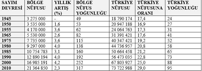 MARMARA BÖLGESİ'NİN NÜFUSU