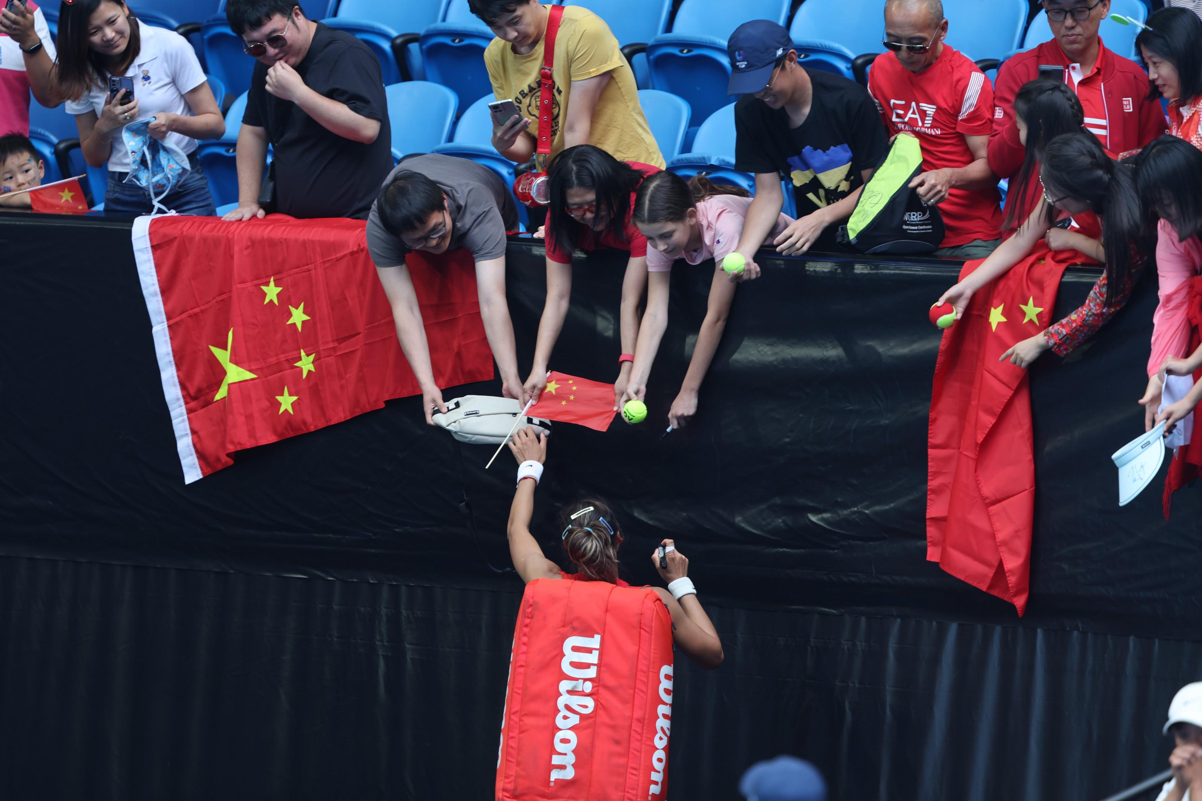 (Qinwen Zheng, maç sonrası sevenleriyle birlikte. / Kaynak: @UnitedCupTennis X)