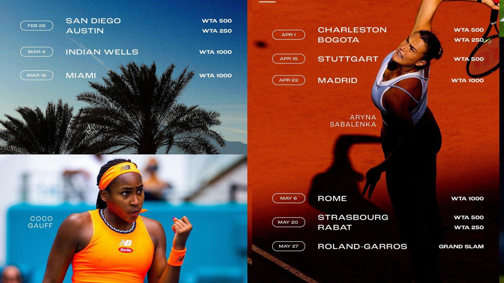 Hem ATP hem WTA oyuncularının katıldığı Indian Wells ve Miami Açık turnuvaları takvimdeki yerlerini koruyor. Toprak sezonuna gelecek olursak yılın ikinci Grand Slam’i olan Roland Garros’un elemeleri öncesi yalnızca beş turnuva mevcut ki bunların çoğu 500 ve 1000 turnuvaları olduğu için eleme oynayacak sıralaması düşük tenisçilerin bu turnuvalarda yer alıp elemeler için hazırlanmaları mümkün değil. Bunun yanı sıra İstanbul’da düzenlenen ve ülkemizde meydana gelen 6 Şubat depremi sonrası iptal edilen WTA 250 turnuvası 2024 yılı için takvime dâhil edilmemiş.
