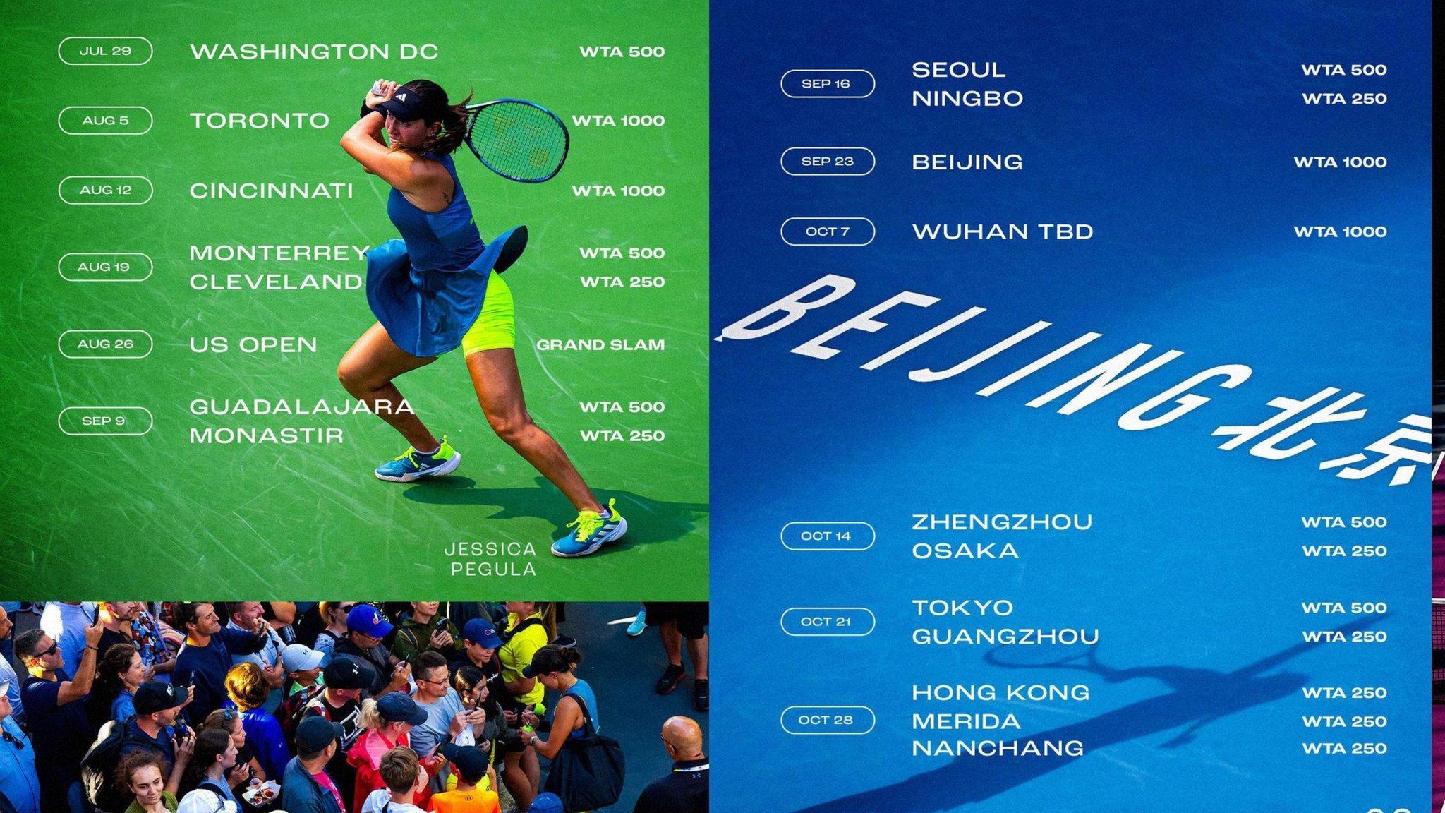 Eylül itibarıyla Amerika Açık sonrası turun Asya ayağı başlamakta. Japonya ve Güney Kore’de düzenlenecek olan turnuvaların da yer aldığı takvimde sayıca Çin’deki turnuvaların yoğunluğu göze çarpıyor. Bunun yanı sıra 2021 yılında WTA Yılsonu Finalleri’ne ev sahipliği yapan Meksika’nın Guadalajara kentindeki turnuva, WTA 1000 iken 500 kategorisine düşürülmüş. Tenisçilerin büyük bir kısmı Asya’da iken oynanacak Meksika turnuvalarında tutkulu taraftar umduğunu bulamayabilir.