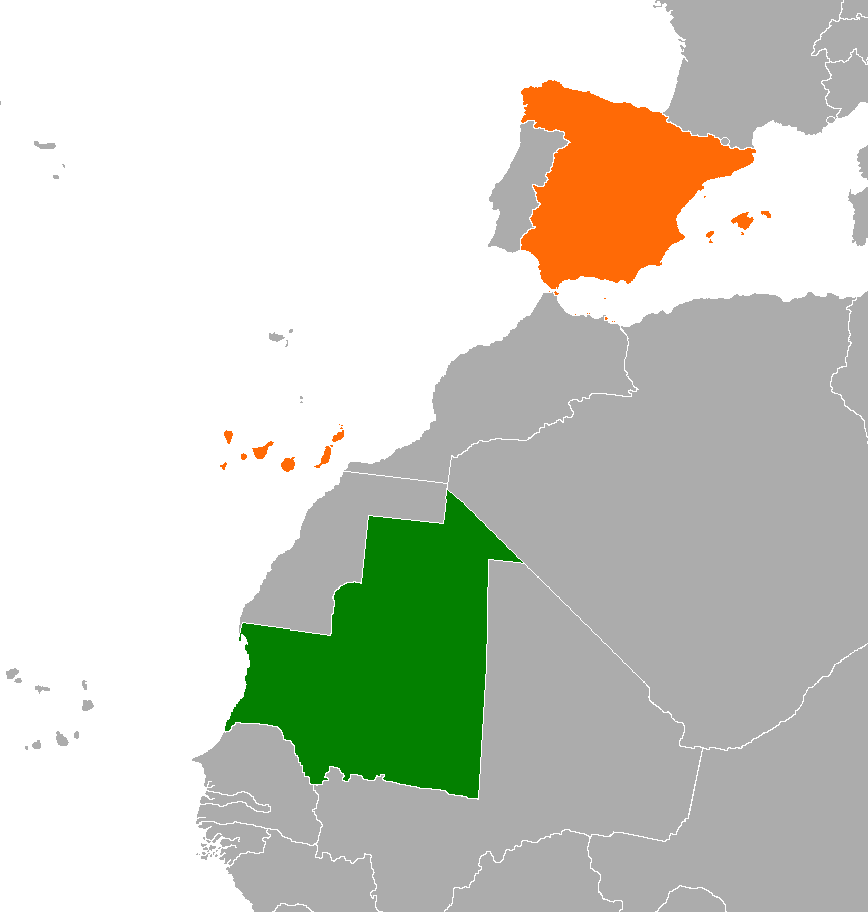 (Yeşil: Moritanya, Turuncu: İspanya ve Kanarya Adaları)