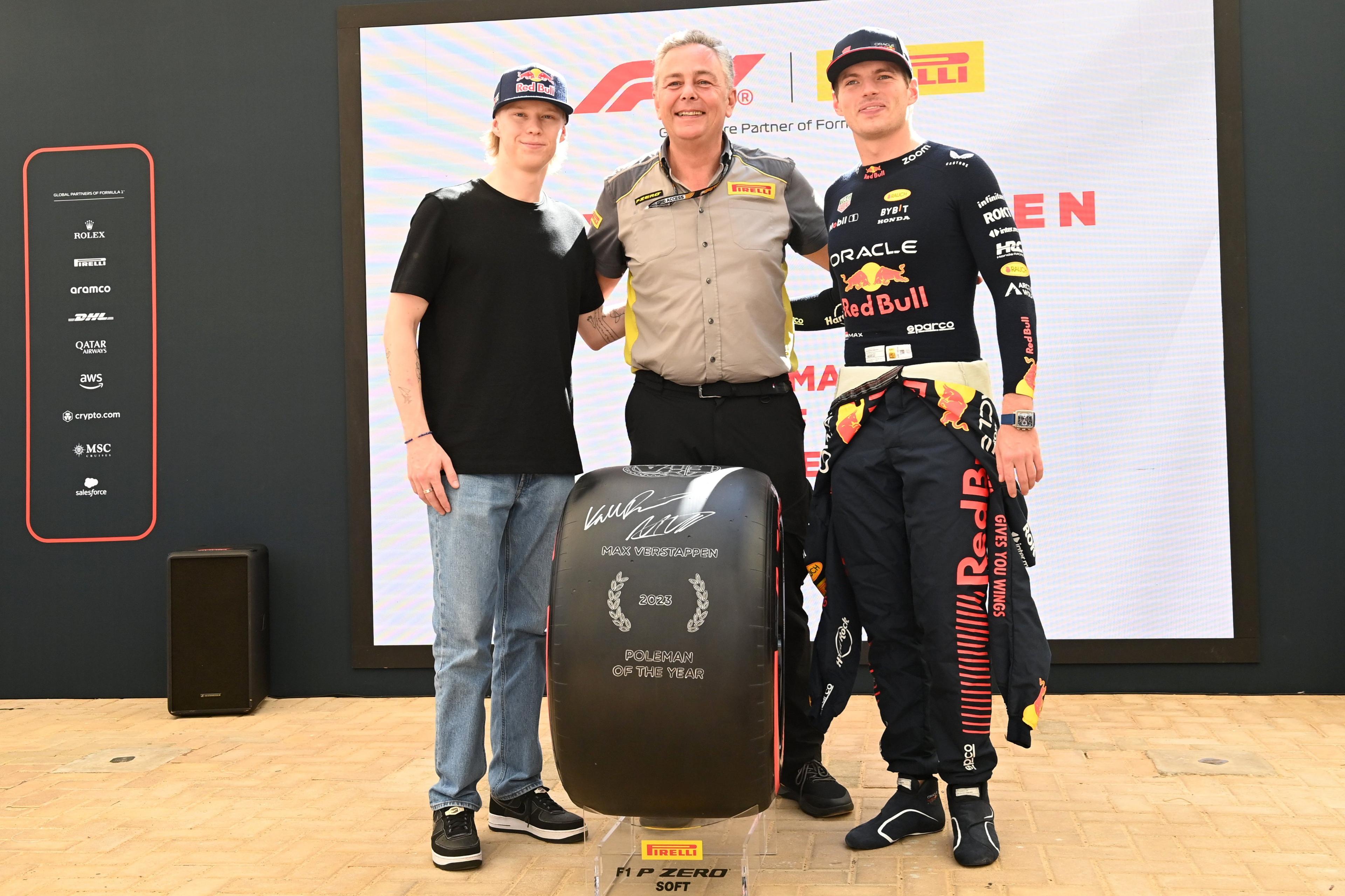 (Dünya Ralli Şampiyonu, Formula 1 Dünya Şampiyonu Max Verstappen'e Abu Dhabi'de ödülünü takdim etti. / Kaynak: @pirellisport X)
