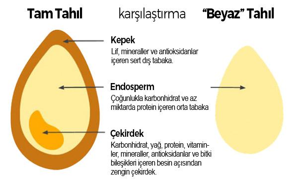 Rafine edilmemiş buğday, arpa, çavdar vb. tahıllardan üretilmiş tam tahıllı ekmek, makarna gibi ürünleri tercih etmek iyi bir seçenektir.