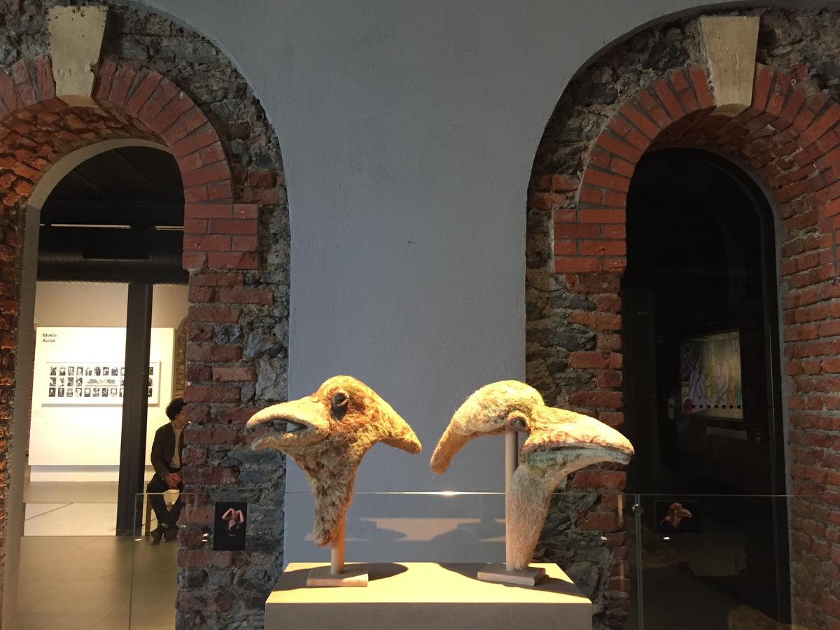 İlk baktığımda beni etkileyen diğer eserlerden biri Karga çalışması. Göknur Avcıya ait bu çalışma, serginin havasını güzel bir auraya taşıyor kanımca. Okuduğum bir röportajda kedisiyle kavga etmeye gelen bir kargadan esinlendiği ve bunun kendini buralara kadar sürüklediğini anlatıyor. Kıtık diye adlandırılan doğal bir malzemeden yaptığı eserleri yakından incelemek güzel bir deneyimdi.