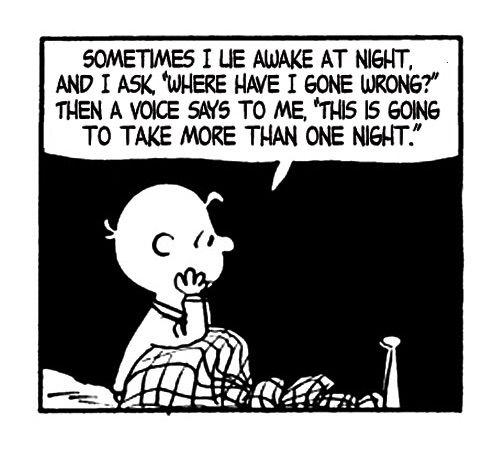 Bazen geceleri durup, soruyorum "Nerede yanlış yaptım?". Sonra bir ses bana diyor ki "Bu, bir geceden daha uzun sürer." -Charlie Brown