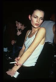 1990'larda ise 'Heroin Chic' akımı ile kürdan gibi ince olmak önemliydi. Bu dönemde modellerin daha zayıf olmak için pamuk yutup kendini kusturdukları bilinenler arasında. Grunge akımı ile dibi gelmiş saçlarla daha serseri bir görünüm ortaya çıktı.Bu akımın öncüsü hiç şüphesiz Kate Moss diyebiliriz.