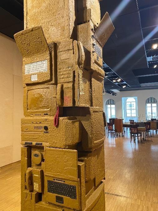 Handan Börüteçene'nin 1987'de 1. Uluslararası İstanbul Çağdaş Sanat Sergileri için gerçekleştirdiği "Kitle İletişimsizlik Araçları vs vs zzzz….bızzzz" çalışması, "Üç İç Denizin Ülkesi" sergisi için yeniden üretilmiş. Sanatçı, geçmişten bugüne insanın insan ile ilişkisi insanın doğa ile ilişkisi, sohbeti ve bağlantısı hakkında doğum yazılarında da bahsettiği gibi işlerinin aslında DNA'sını oluşturuyor diyebilirim. Çalışmada kitle iletişimi olan araçların cam macunu ile kaplandığını görüyoruz. Bir nevi bu araçlar kapalı kutu haline bürünüyor fakat sanatçı, kanal tuşlarını kaplamıyor. Bizim bir nevi emek verip doğru kanalı yani doğru iletişimi bulmamızı istiyor. Hala günümüzde iletişimsizlik sorunu katlanarak devam ettiği için sanatçı, bu çalışmanın bir de modern versiyonunu, günümüzdeki kitle iletişim araçlarının olduğu halini de yapmış. Benim en beğendiğim çalışmalardan biri de bu oldu. Mesajın çok güçlü verildiğini düşünüyorum. Günümüzdeki iletişim kuramama, etkileşimsizlik sorunsalını çok iyi yansıtmış.