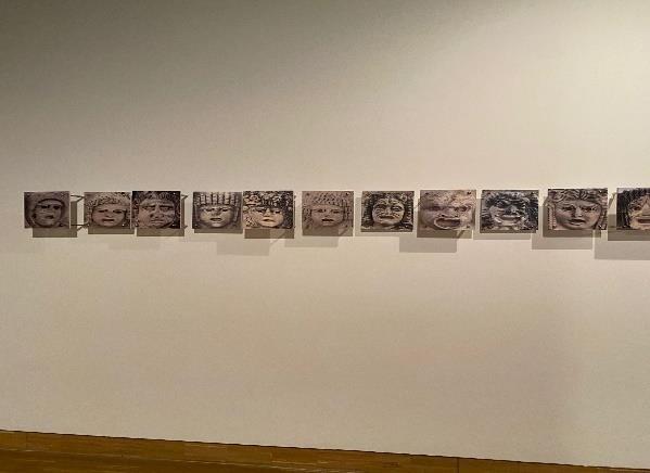 Biraz daha dolaştığınızda Börüteçene'nin "Çok Sıkıldım" adlı çalışmasında, bugünkü Demre ilçe merkezi ve civarında yer alan Myra Antik Kenti Roma tiyatrosunda bulunan 21 adet tragedya portre fotoğrafları ile karşılaşıyoruz. Sanatçı, günümüze kadar taşlarda oyulu yüzlerin aslında hapsolduğunu ve ne kadar sıkılmış olabileceklerini anlatmış. Çalışmada farklı tonlamalarda çok sıkıldım cümlesinin tekrarlarını duyuyoruz. Açıkçası serginin tek hoşuma gitmeyen çalışması oldu diyebilirim çünkü insana iç daraltıcı bir hava veriyor. Başka bir çalışmaya baktığınızda arka plandan sesleri duyabiliyorsunuz ve birbirine karışıyor. Sanatçı, keşke bu çalışmasına yer vermeseydi, içimden o çalışmadan uzaklaşma isteği geldi.