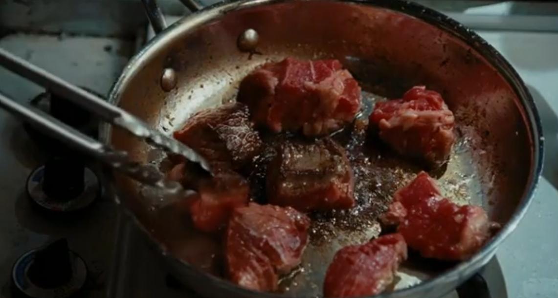 Bir diğer gastronomik unsur olarak filmin belki de en önemli yemeği olan ve yine Julia Child'ın imza yemeklerinden boeuf bourguignonu görüyoruz. Julie'nin Julia Child'ın editörünün geleceği günün gecesi bu yemeği yakmasıyla bir şeylerin yolunda gitmeyeceğini önceden tahmin edebiliyoruz.