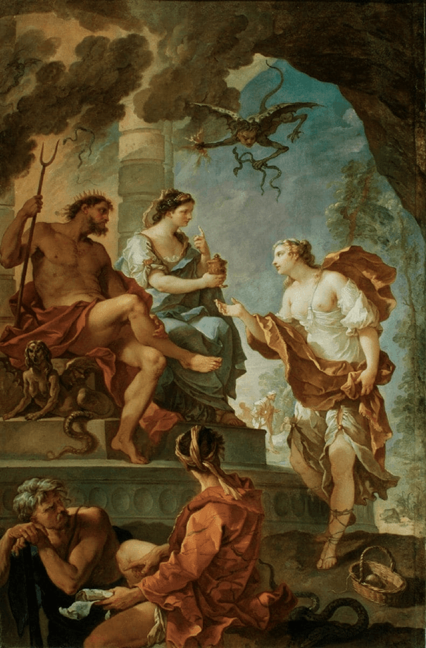 This final task was by far the most challenging of all. Psyche was required to travel to the Underworld, request a day’s worth of Persephone’s beauty, and bring it back to Aphrodite in a box. Believing that the only way to reach Hades was to die, Psyche climbed a high tower with the intention of throwing herself into the hell. However, guided by divine intervention, the tower revealed a different approach. Psyche did everything the tower told her to.