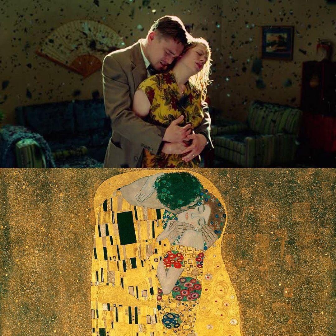 aslında Gustav Klimt'in 'Öpücük' (1908) adlı tablosundan esinlenildiğini öğrendiğimde içimde oluşan "Acaba başka hangi filmde tablolardan esinlenilmiş sahne vardır?" sorusundan sonra yaptığım küçük araştırma sonucunda bulmuş olduğum sahneleri sizinle paylaşmak istedim. İşte o sahneler;