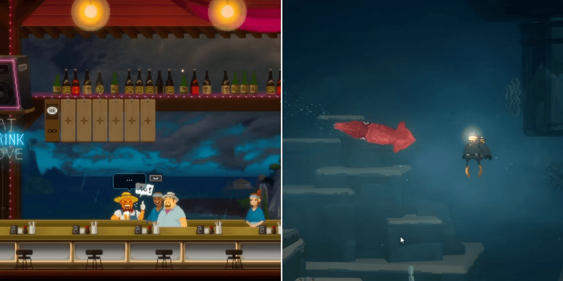 Dave the Diver; gündüzleri dalgıçlık yapıp balık avladığımız, geceleri ise bir suşi restoranında garsonluk yaptığımız tuhaf ve eğlenceli bir yapım. Uçuk kaçık karakterleri, rengarenk denizaltı manzaraları ve mini oyunlarıyla sizi saatlerce kendine bağlamayı başarıyor. İlk başlarda sabahları sadece balık avlama odaklı bir oyun zanederken yavaş yavaş değişmeye başlıyor. Ama ne değişmek! Deniz insanlarından, mutant canavarlara, devlere kadar (evet evet, bildiğimiz denizin altında dev var) daha ne olabilir ki diye düşünürken üstünüze farklı çeşit deniz yaratıkları atmaya devam ediyor. Balık avlama faslı bittikten sonra sıra geldi avladıklarımızı pişirmeye. Akşamları suşi restoranına gidiyor ve müşterilere garsonluk yapıyoruz. Restoranın dekorunu değiştirmek, yardımcı garson ve aşçılar tutmak, yeni menüler geliştirmek gibi atraksiyonlara girebiliyoruz.