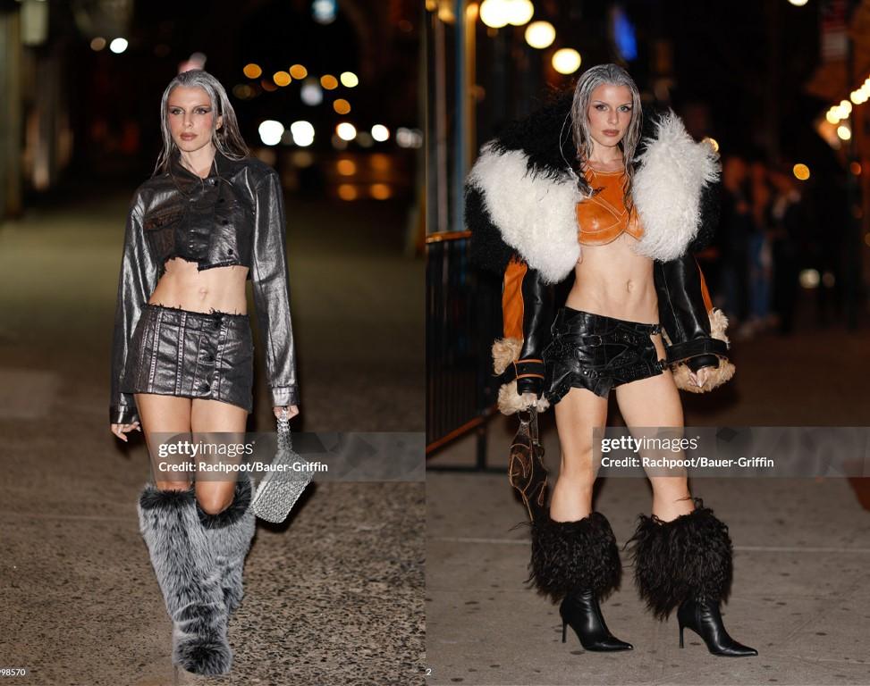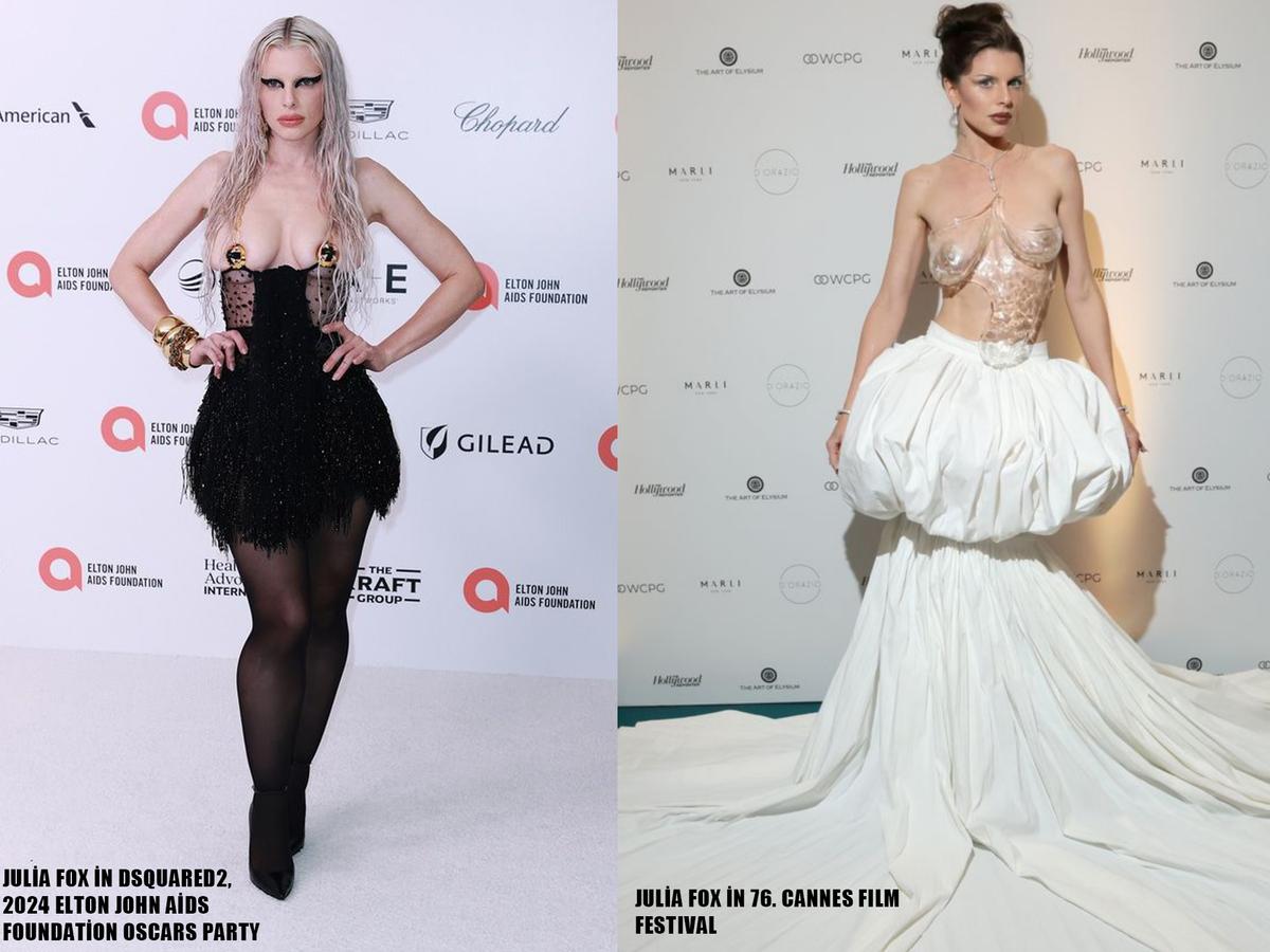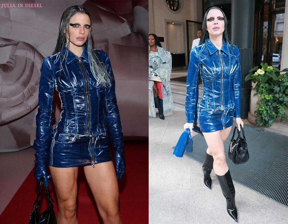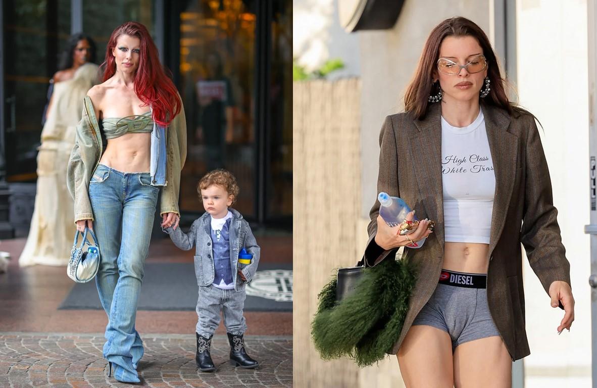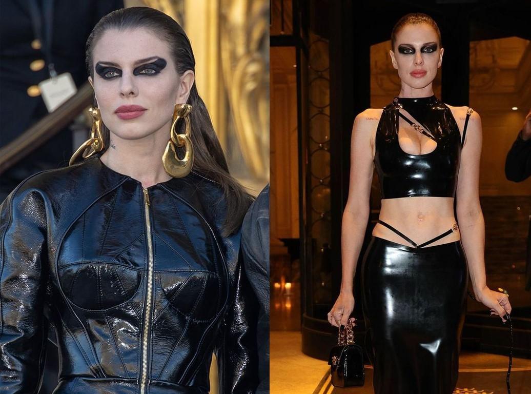 Sadece Diesel mi diyecek olursanız hayır. Julia, 2022'de o zamanki erkek arkadaşı Kanye ile katıldığı Schiaparelli defilesindeki looklarıyla da yiyip kırıntı bırakmamıştı.