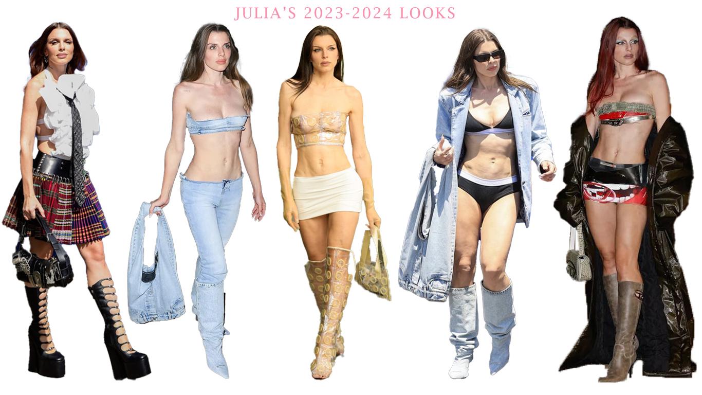 2022 ve sonrasında Julia tarzında köklü bir değişime gitmiş ve moda dünyasında tarzıyla konuşulmaya işte o zaman başlanmış. Verdiği bir röportajda Kanye West ile tanıştıktan sonra onun tarzından etkilendiğini fakat ne onun ne de insanların konuştuğu gibi Kanye'nin eski eşi Kim'in tarzını kopyalamadığını, kendi tarzının zaten bu olduğunu, Kim ile olan kıyaslamalar için de kadınların her zaman birbirleriyle karşılıştırılmasından nefret ettiğini söylüyor. Julia'nın tarzının değişimini adım adım görmek isteyenler için buraya onunla ilgili detaylı bir yazı bırakıyorum: https://www.glam.com/1427531/stunning-style-transformation-julia-fox/