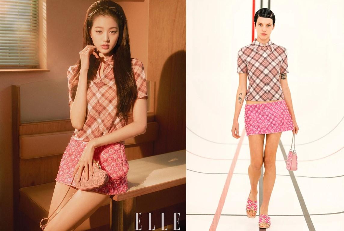 Gelelim Wonyoung'un tarzına. Kendisinin Miu Miu serüveni IVE grubuyla çıkış yaptıktan sonra başladı. Çıkış şarkıları olan LOVE DIVE eralarında sahnede grupça giydikleri Miu Miu lookları çok beğenilip konuşuldu.