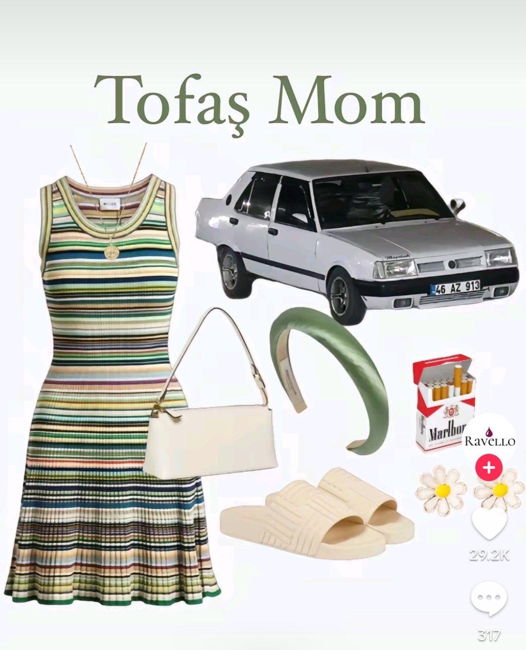 Gelelim benim dikkatimi asıl çeken kısıma. Bu lüks markalar arasında, bir takipçisinden gelen ''Tofaş mom please'' yorumu üzerine ülkemizin en ikonik arabalarından biri olan Tofaş için de bir ''mom aesthetic'' yapmış ve gerçekten...cuk oturmuş. Muhtemelen araştırmaları sonucunda Tofaş'ın daha eski yıllarda kullanıldığını gören bu hesap, arabaya 70'lerin kadınlarını andıran bir estetik hazırlamış. Ki bence bu da çok tatlı olmuş.