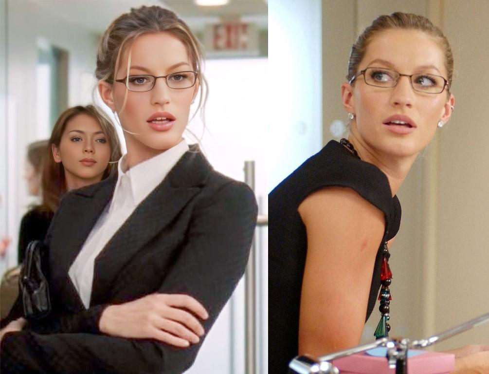 Bu lookun en büyük ilham kaynaklarından biri Giselle Bündchen'in Şeytan Marka Giyer filmindeki rolünün ofis görünümü. O gözlükleri, ceketi ve yargılayıcı suratı. Kısacası, seksi bir ofis kadını.