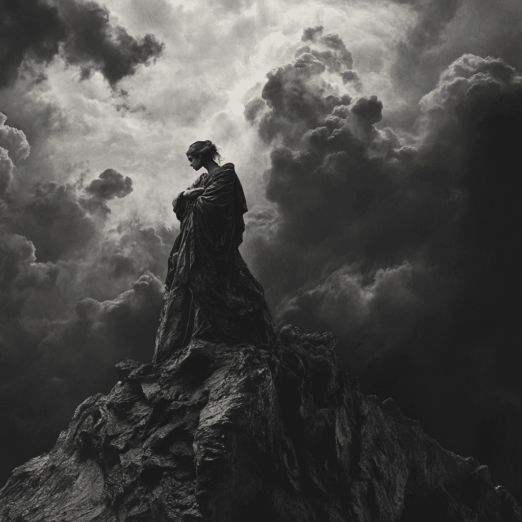 (Dağın zirvesinde yalnız başına Psyche, bu fotoğraf yapay zeka ile oluşturuldu.)