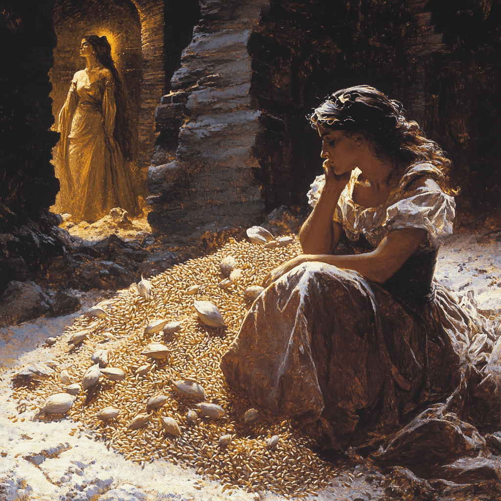 (Tohumları nasıl ayıklayacağını kara kara düşünen Psyche, bu fotoğraf yapay zeka ile oluşturuldu.)