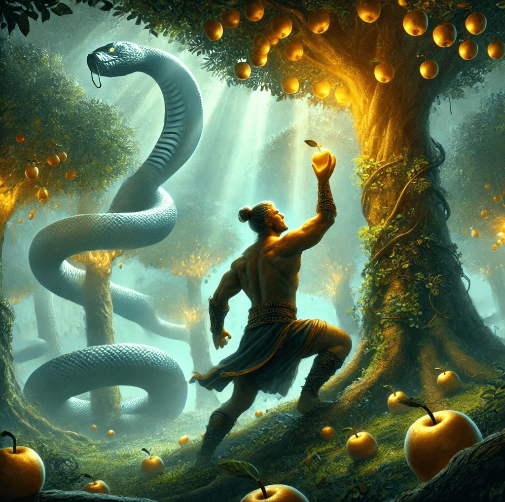 Herkül’ün on birinci görevi Hesperidler Bahçesi’ndeki altın elmaları alıp Miken’e götürmekti. Bahçe Hesperdiler tarafından korunuyordu. Bu görevi zorlu yapan şey ise bahçenin girişindeki devasa yılan Ladon’du. Herkül deniz tanrısı Nereus’u yakaladı ve onu bahçenin yerini söylemesi için zorladı. Sonrasında da zincire vurulmuş Prometheus ile karşılaştı. Zeus Prometheus’u ceza olarak kayaya bağlamıştı ve onun ciğeri her gün bir kartal tarafından yeniyordu. Herkül kartalı öldürdü ve Prometheus’u serbest bıraktı. Prometheus’da ona elmaları almak için Atlas’tan yardım alması gerektiğini söylüyor. Atlas elmaları getirmek için Ladon’u atlayabileceğini söyledi ama karşılığında Herkül’den gökyüzünü tutmasını istedi. Daha sonra Atlas elmaları aldı ama gökyüzünü geri taşımak istemedi. Herkül zekasını kullanıp onu da alt etti. Omuzlarını düzeltmek için gökyüzü tutsun diye Atlas’tan yardım istedi. Atlas gökyüzünü geri sırtladığında Herkül hemen elmaları alıp oradan kaçtı.
