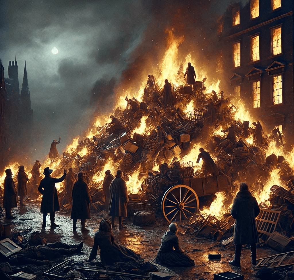 Bu satırlarda güneş söndükten sonra insanların ışık yaratabilmek adına sosyal statü fark etmeksizin ellerindeki her şeyi yakmaları anlatılıyor. Bu durum insanların kendilerine çözüm ararken bile aslında ne kadar bencil davrandıklarını ve ne kadar aciz olduklarını bizlere gösteriyor. Yani hiçbir şeyin onlara hizmet etmediği sürece bir anlam ifade etmediğini hakkında düşüncelerini her şeyi yakıp yıkabilmelerinden anlayabiliriz. Şiirin ilerleyen bölümlerinde ise bu durum daha da vahşileşerek ortaya çıkıyor.