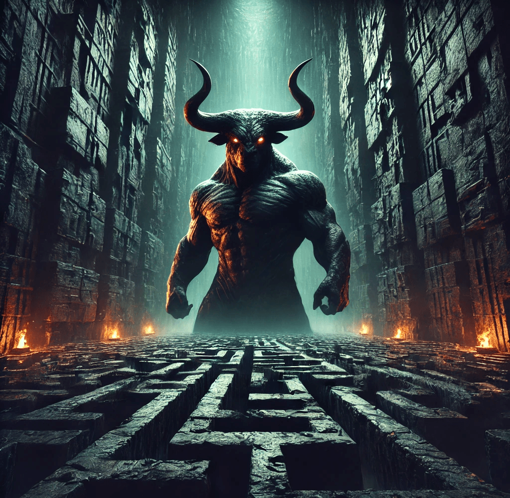 Minotor bir boğanın yarusu olan yarı boğa yarı insan bir canavardı. Poseidon Minos’a kendisine kurban etmesi için bir boğa vermişti ama Minos onu öldürmeye kıyamamış ve kendisine saklamıştı. Poseidon sözü dinlenmediği için çok sinirlenmişti ve Minos’u cezalandırmak için karısı Pasiphaë’yi bu boğaya delicesine aşık etmişti. Sonrasında Pasiphaë ve boğanın bir çocuğu olmuştu. İşte o Minotor’du. Minos onu öldürmedi ama onun için kaçmanın imkânsız olduğu bir hapis yeri ve labirent inşa ettirdi. Bu labirente girenin yolunu bulması mümkün değildi. İşte Minos’un intikam ateşiyle genç Atinalılar buraya bırakılırdı. Kaçılması mümkün olmayan bu labirent aynı zaman da her yanı Minotor’a çıkan yol olarak sayılabilirdi.